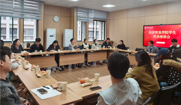 (通讯员 陈意萍)为精准把握本研学生在学习、生活、发展等方面的现实需求,持续优化学院管理服务与人才培养工作,2026年1月16日下午,经济贸易学院在文泉楼北503会议室召开学生代表座谈会。院党委书记刘筱彤、党委副书记左思以及全体辅导员、教学秘书与各年级学生代表齐聚一堂,围绕学生管理服务、学生活动、教学管理等核心议题展开深入交流,共商发展良策。座谈会由左思主持。