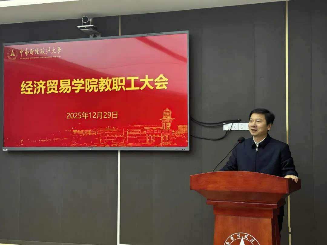 (通讯员 刘宝林)12月29日下午,经济贸易学院教职工大会在文泉楼北415会议室隆重召开,校长、经济贸易学院院长朱方伟,经济贸易学院党委书记刘筱彤,副院长石军伟、吴英娜、胡宗彪,党委副书记、纪委书记左思及全体教职工参加会议。会议由刘筱彤主持。