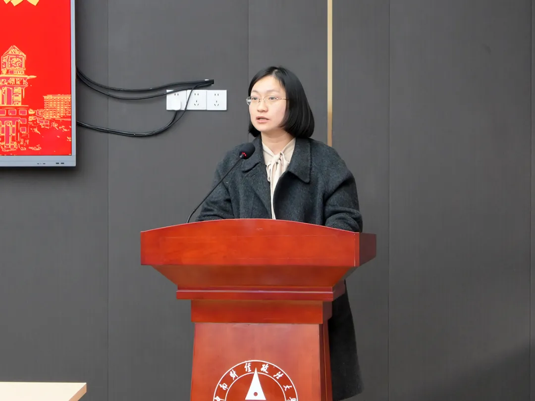 左思就学生思政与本科招生宣传工作进行汇报。她介绍了2026年学生工作重点,动员全体教职工以实际行动落实育人职责,优化育人生态,助力学生全面发展。随后,她在分析学院2025级生源质量和湖南生源分布的基础上,呼吁全体教职工在招生计划布局、招生宣传内容优化、校友资源联动拓展等方面协同发力,共同吸引优质生源。