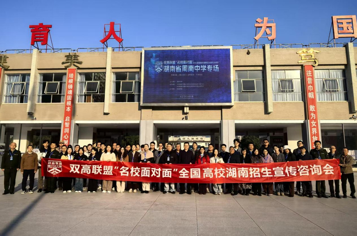(通讯员 陈跃)为积极拓展2026年本科优质生源,吸引更多湖湘优秀学子报考我校,1月10日至11日,经济贸易学院辅导员江为民与国际贸易学研究生陈跃一行,赴长沙参加“‘智汇长沙・筑梦未来’2026年全国高校湖南招生宣传咨询会”。宣讲团队先后走进周南中学、麓山国际实验学校、长沙县实验中学等三所重点高中,通过现场咨询与互动交流,向高三学子及家长传递最新招生政策,搭建高校与中学协同育人的双向桥梁。