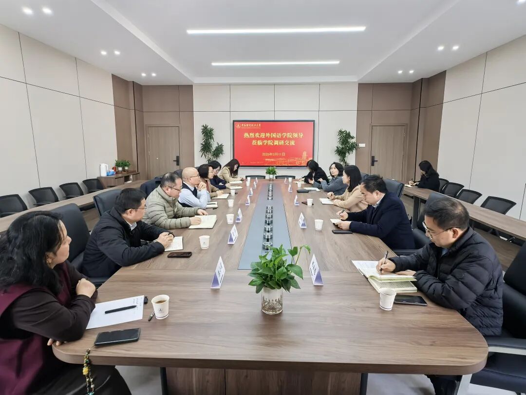 (通讯员 胡源)为深入贯彻学校关于促进学科交叉融合的部署要求,积极探索跨学院协同创新路径,凝聚发展合力,3月11日下午,外国语学院全体领导班子一行前往经济贸易学院开展调研交流活动。经济贸易学院党委书记刘筱彤,副院长石军伟、吴英娜、胡宗彪,党委副书记左思出席座谈会。双方围绕人才培养、学科建设、科学研究及国际化建设等核心议题进行了深入座谈。