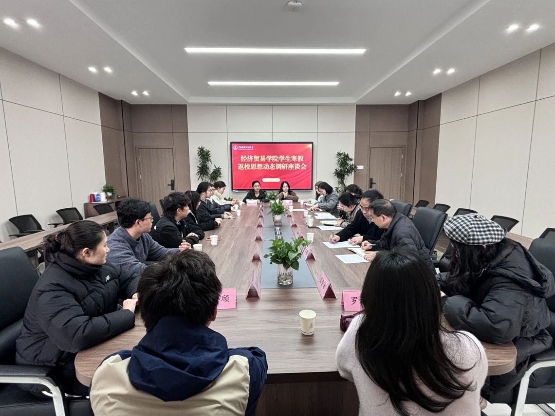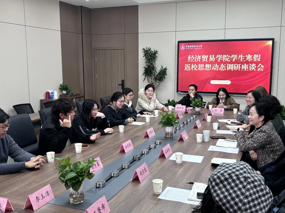 (通讯员 王誉希 赵夏雨)为及时准确掌握学生寒假返校后的思想动态,进一步增强思想政治工作的主动性、针对性和实效性,3月19日下午,经济贸易学院在文泉楼北510会议室组织召开学生寒假返校思想动态调研座谈会。院党委书记刘筱彤,副院长石军伟、吴英娜、胡宗彪,副书记左思与本硕博学生代表参会。座谈会由左思主持。