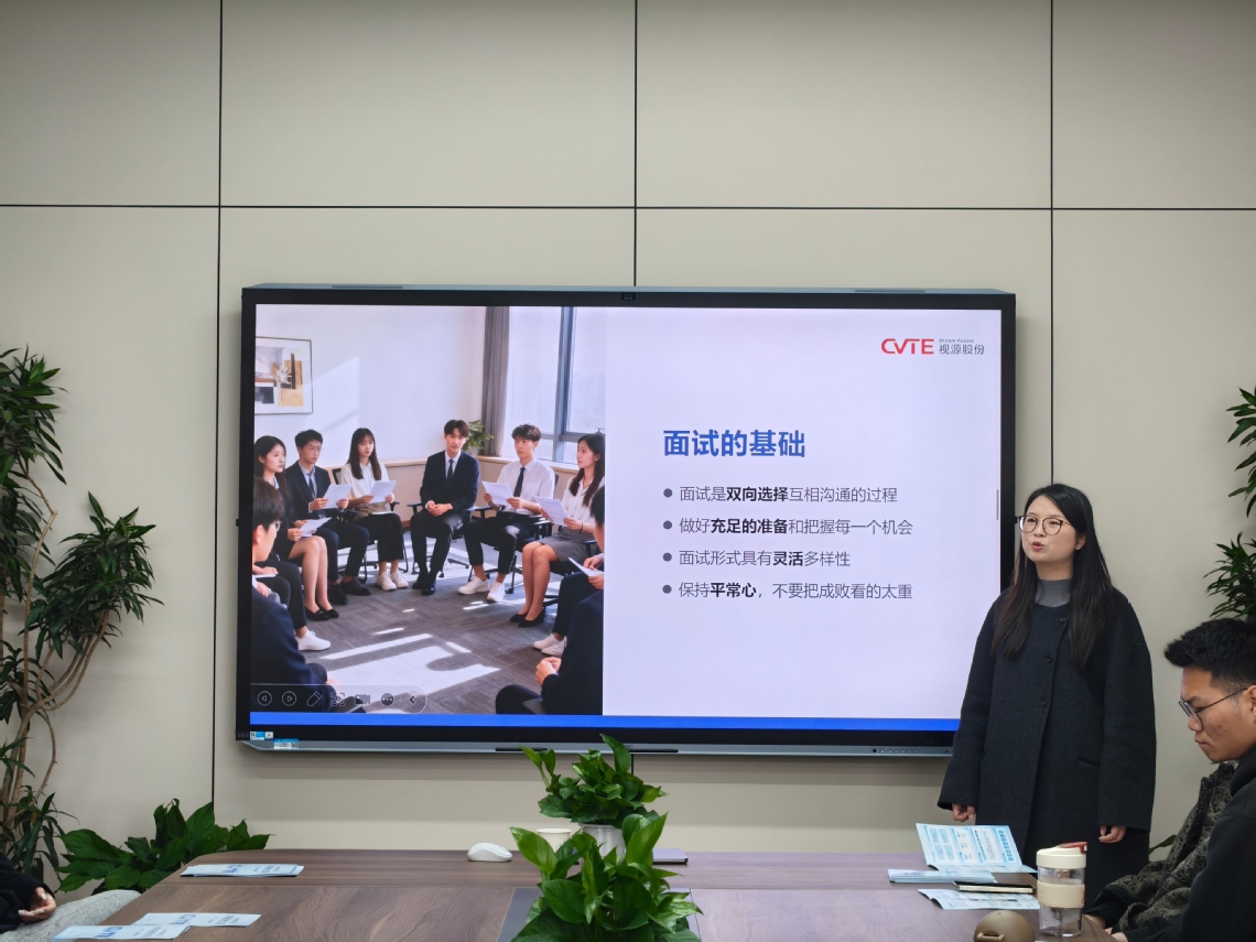 CVTE校招团队的资深讲师立足企业用人需求与行业发展趋势,结合多年招聘实践经验,针对研究生群体的学历背景、专业特长与求职特点,从简历优化、笔试技巧、面试礼仪、职业规划等多个核心维度展开分享。讲师通过真实招聘案例拆解,细致讲解了简历撰写中突出优势、规避误区的关键要点,针对笔试常见题型进行了技巧点拨,并现场模拟面试场景,指导同学们如何精准回应面试官提问、展现个人核心竞争力。同时,讲师还围绕行业发展前景与企业人才需求标准,为同学们提供了贴合实际的职业规划建议,帮助大家明确努力方向。