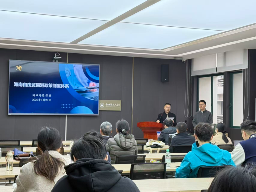(通讯员:方思怡)3月20日,中南财经政法大学经济贸易学院“海南自由贸易港政策制度体系”和“海南自由贸易港海关监管创新”两场讲座在文泉楼北415会议室举行。本次讲座特邀海口海关自贸区和特殊区域发展处张寅副处长进行专题分享。讲座由经济贸易学院胡宗彪副院长主持,学院曹亮教授、吴振球教授、余乐芬副教授、赵曜副教授、谭智老师、侯娱林老师等和各专业研究生参加了此次讲座。