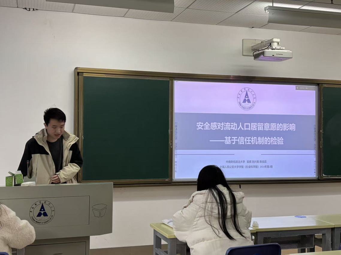 学术分享交流环节,刘兴昊同志围绕其发表于《中国人民公安大学学报(社会科学版)》的研究成果《安全感对流动人口居留意愿的影响——基于信任机制的检验》,系统介绍了研究背景、模型构建与政策启示。分享结束后,与会同志就选题价值、机制检验与现实应用展开讨论,实现了学术思辨与理论学习的深度融合。